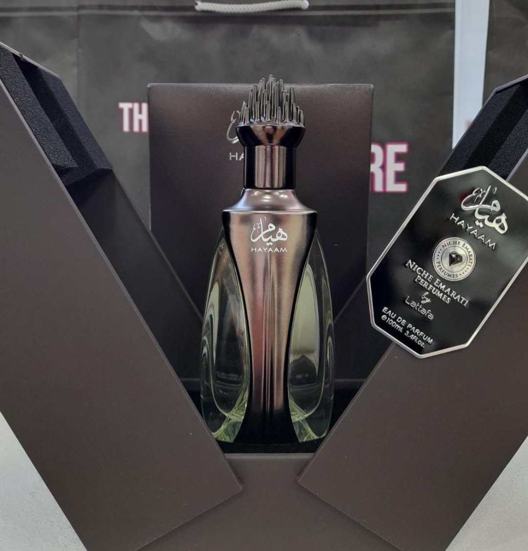 HAYAAM de Lattafa es un perfume unisex de la línea Niche Emarati con una familia olfativa floral marina, que destaca por su frescura y notas acuáticas, cítricas y saladas en la salida, evoluciona a un corazón de lirio de los valles e iris, y se asienta en una base cálida de ámbar gris, sándalo y musgo de roble, ofreciendo un aroma lujoso y duradero.