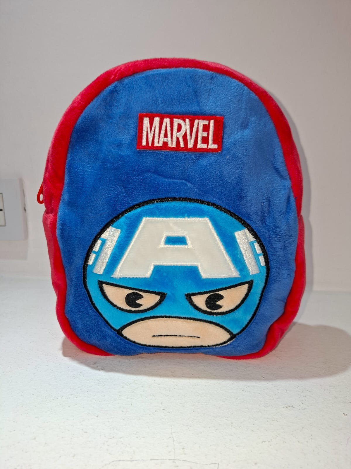 Mochila con material de Felpa, de Marvel, específicamente del Capitán America.